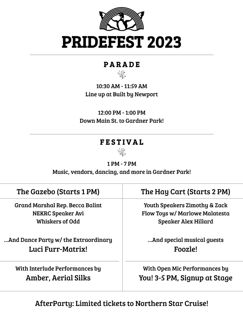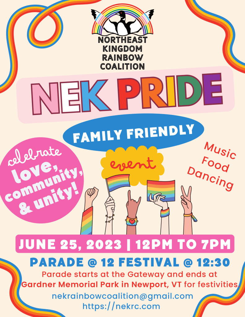 Thank you for making the very first NEK PrideFest an astounding success! Including the marchers, drivers, performers, vendors, and volunteers, we had more than 300 participants. We got a bit of smoke blowing across the lake from Canada, but everyone kept their cool. The organizing team appreciates every single person who came out for this. We learned a lot, and we’ll bring all that knowledge next year!